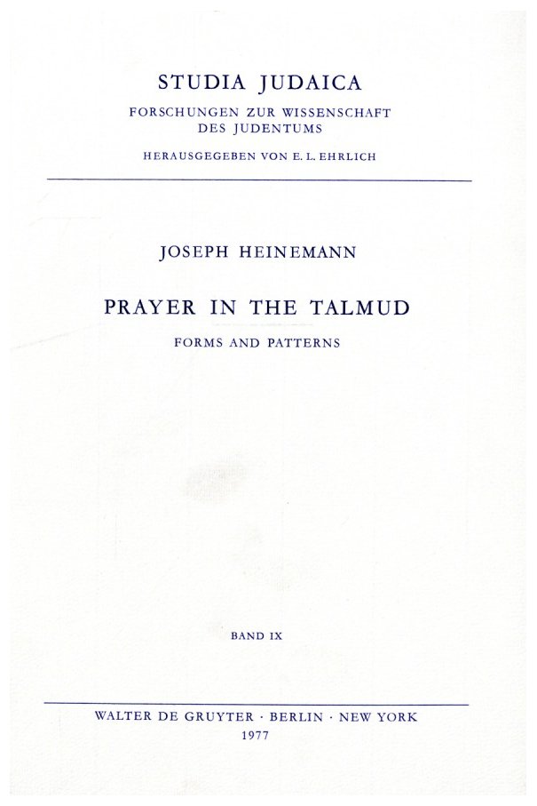 Prayer in the TalmudHeinemannJoseph